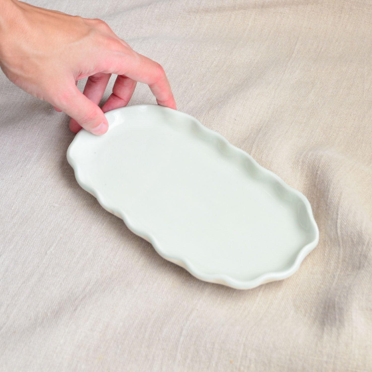 Handmade in our Noosa studio from Australian porcelain clay and finished with our dreamy Mist glaze — a gentle aqua that feels like a breezy morning by the water. Each piece is unique, with a polished, tactile unglazed base.