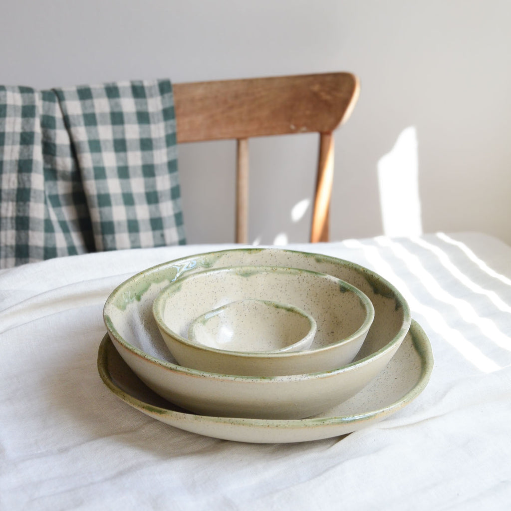 Choose from our gorgeous selection of finishes and sizes for the perfect handmade ceramic bowl. Each piece is shaped and coloured entirely by hand, creating a gorgeous organic feel with no two pieces exactly the same. All pieces are high-fired for durability, food-safe, dishwasher and oven safe.