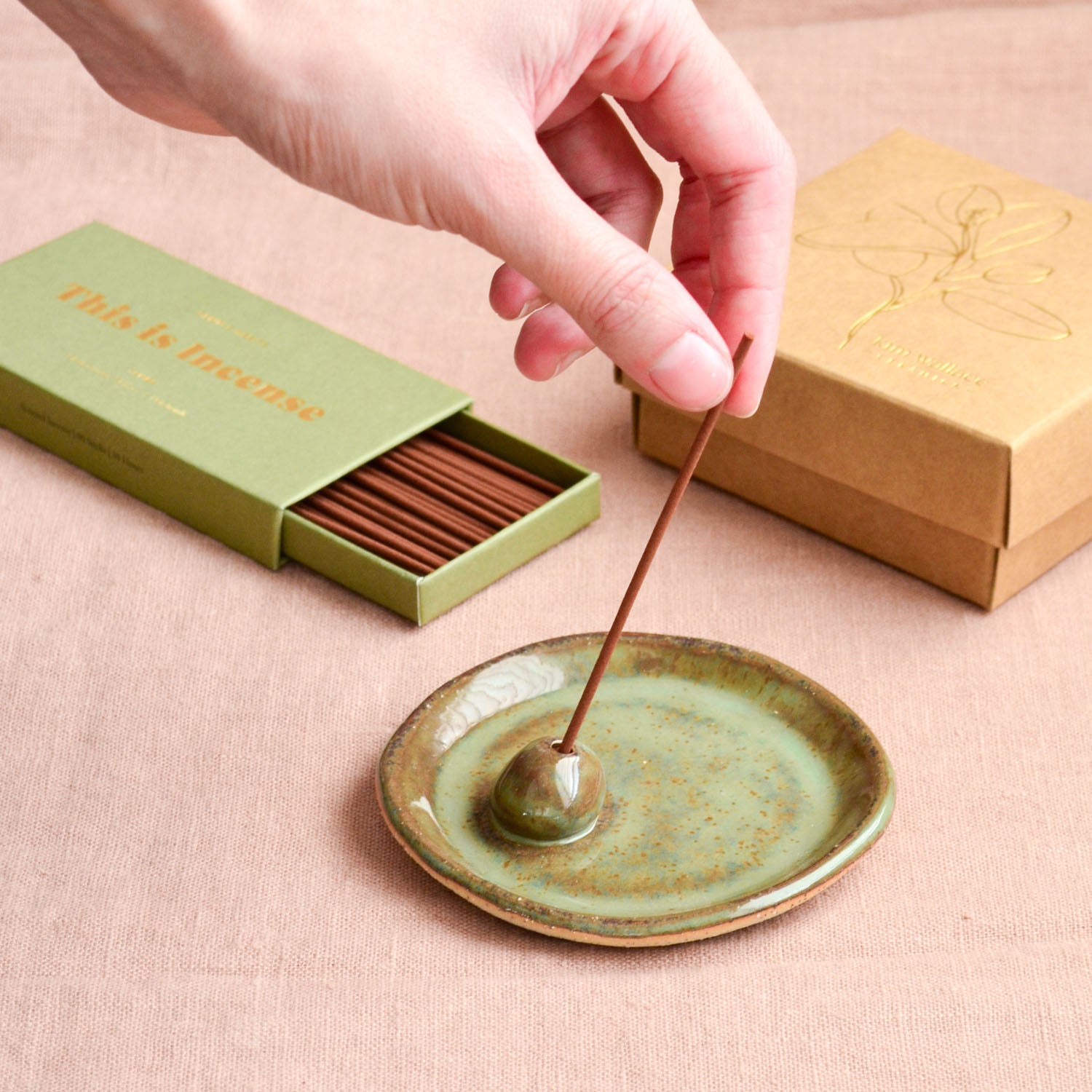 Handmade in our Noosa studio from premium Australian stoneware, this elegant ceramic incense holder is finished in our deep green Banksia glaze.