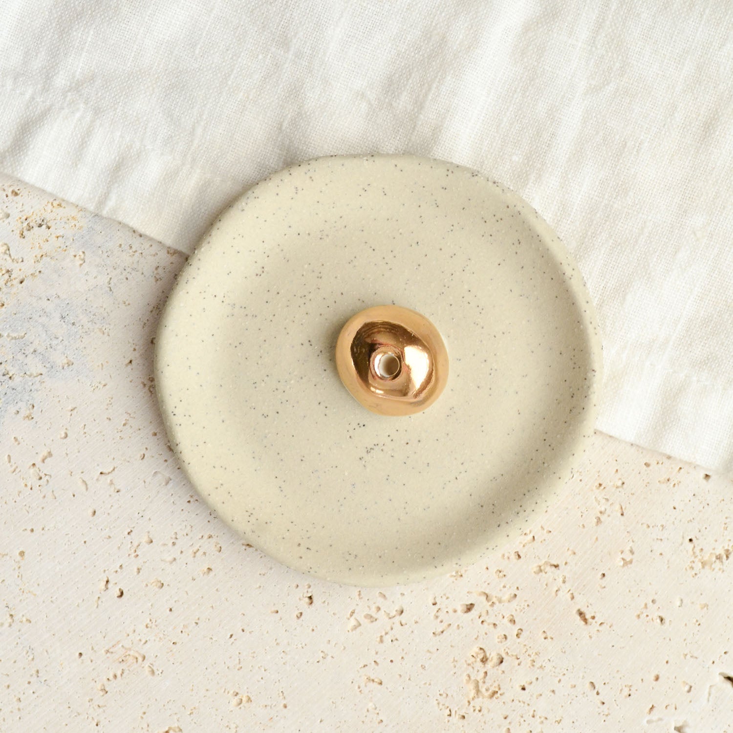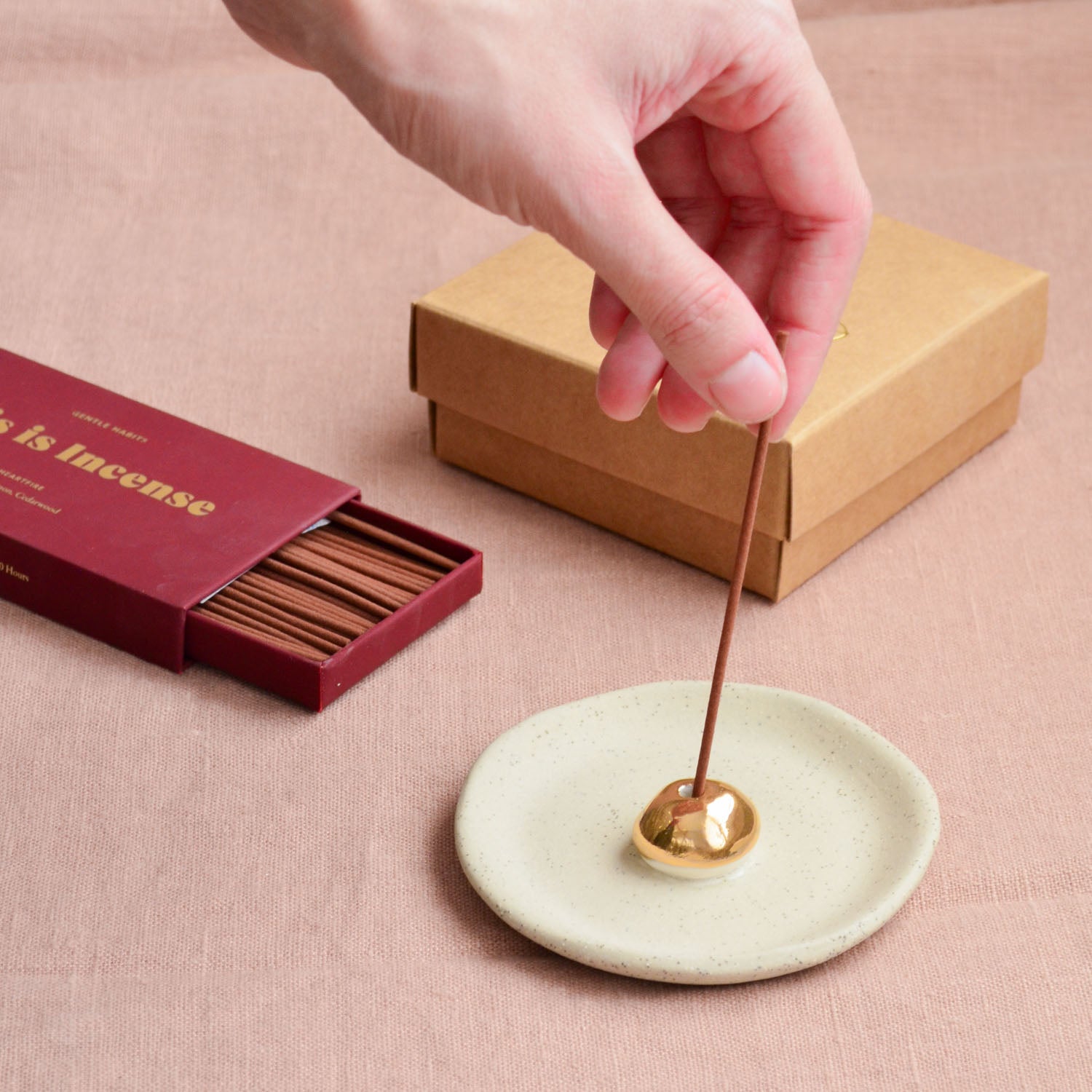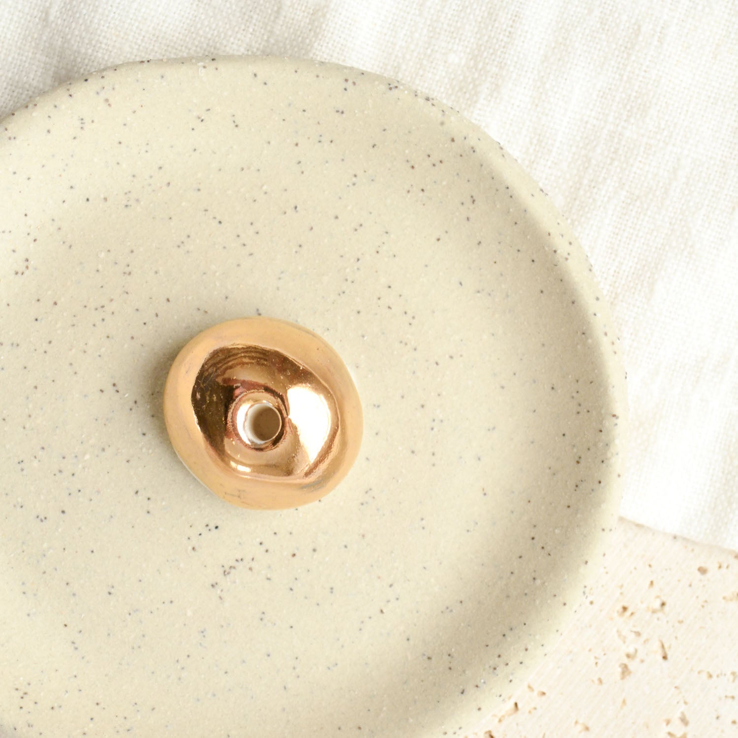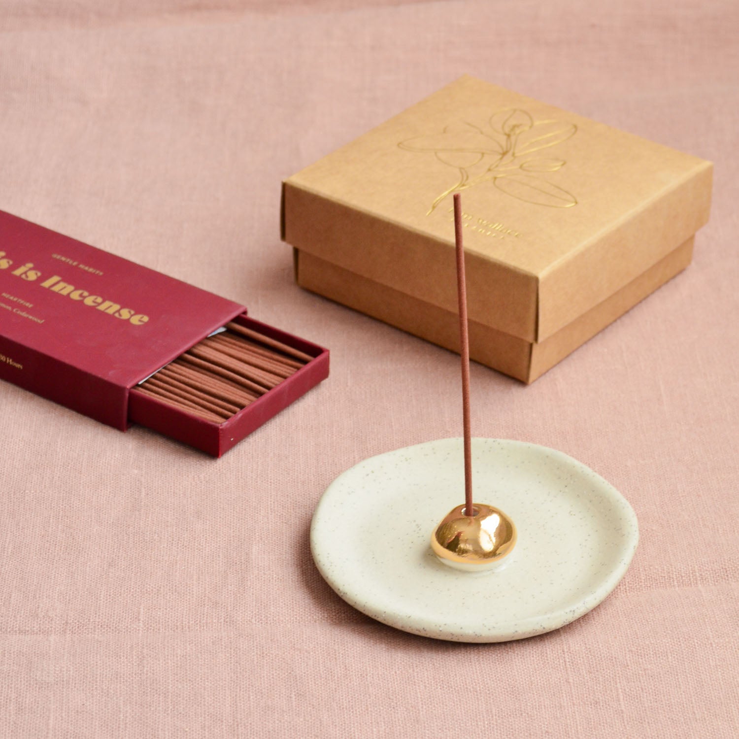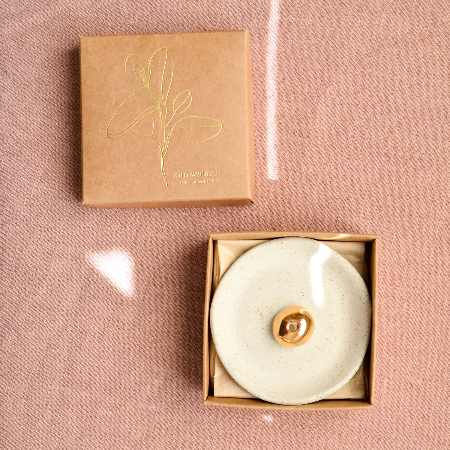 Handmade in our Noosa studio from premium Australian stoneware, this elegant ceramic incense holder features a true gold lustre for a rich, luxurious finish that catches the light beautifully.