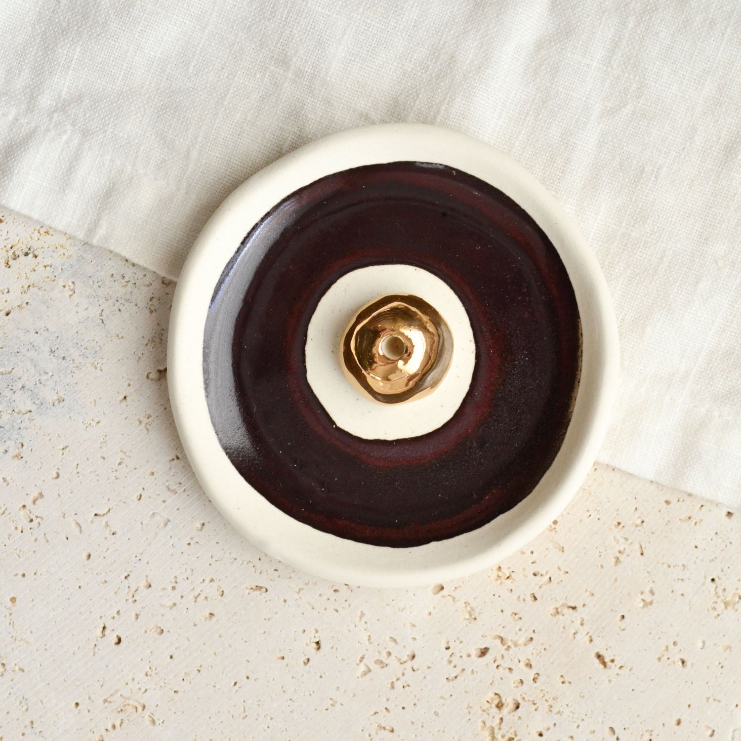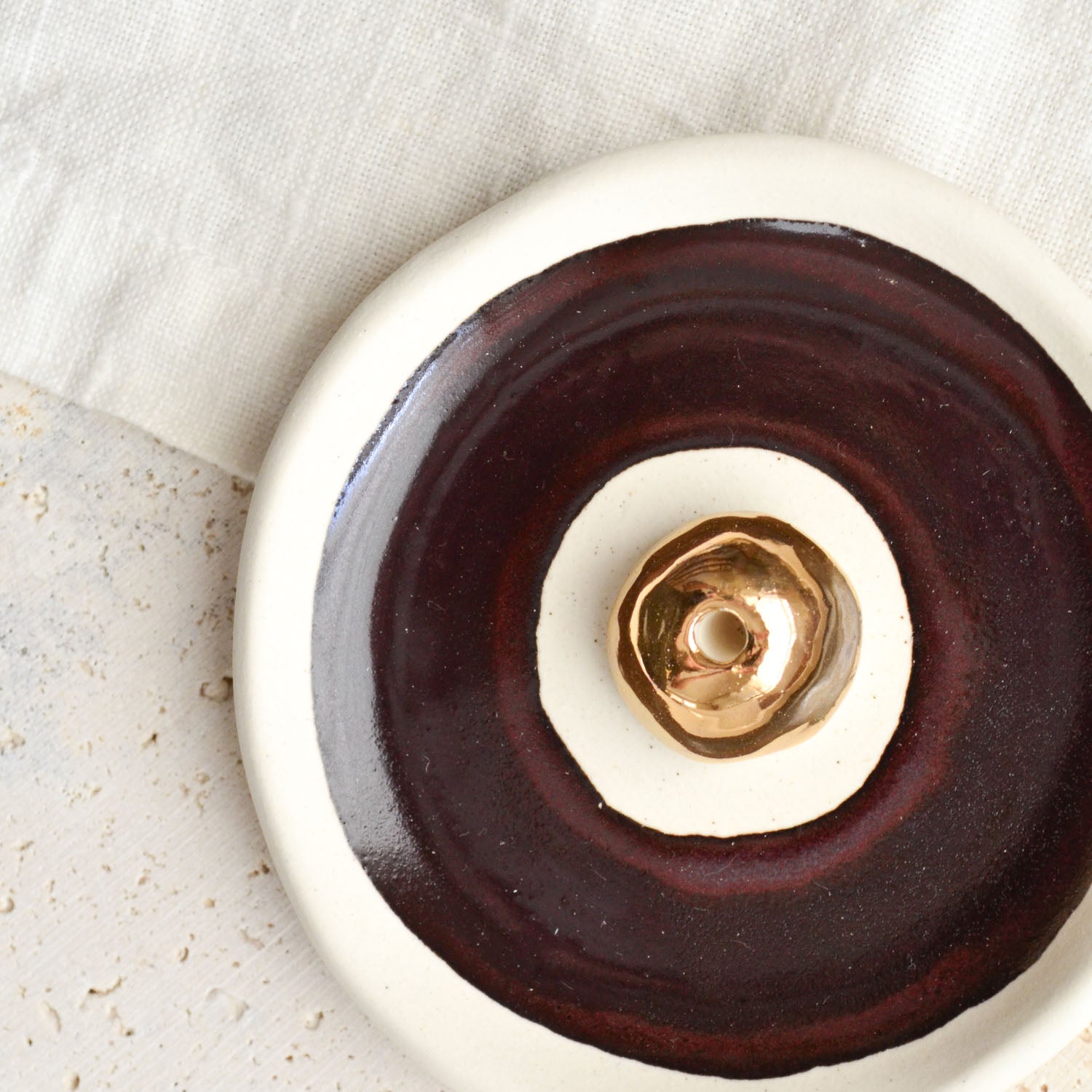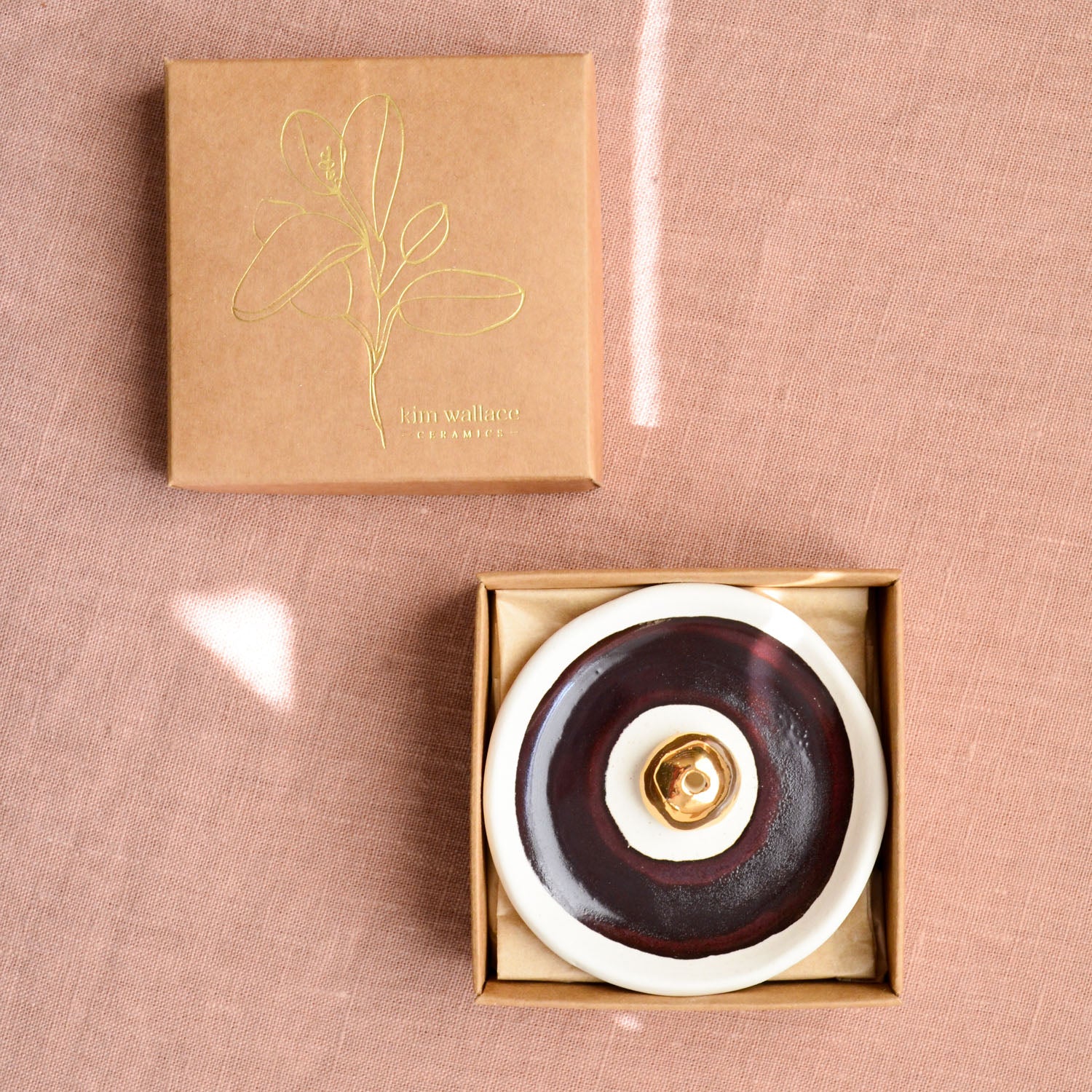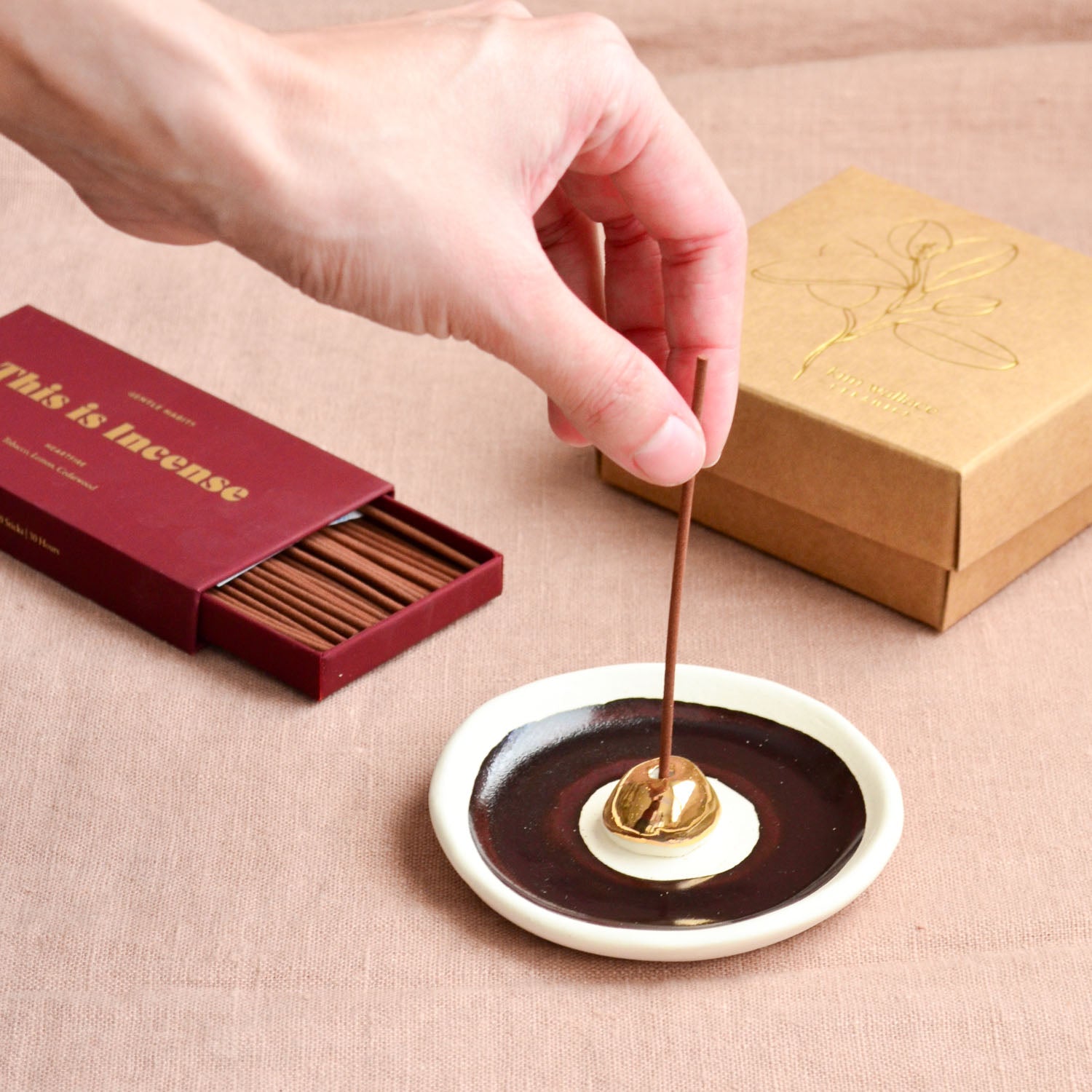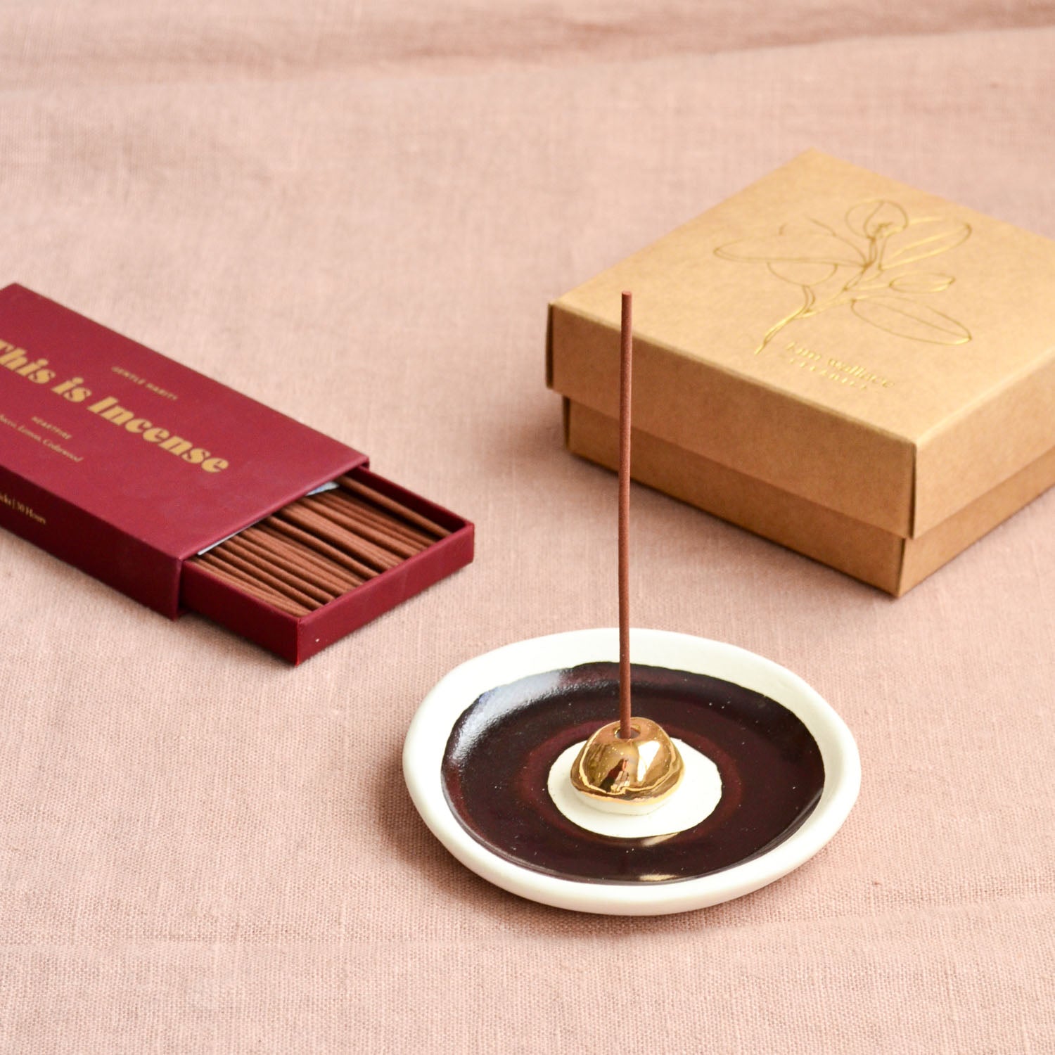 Handmade in our Noosa studio from premium Australian porcelain, this elegant ceramic incense holder features a true gold lustre for a rich, luxurious finish that catches the light beautifully.