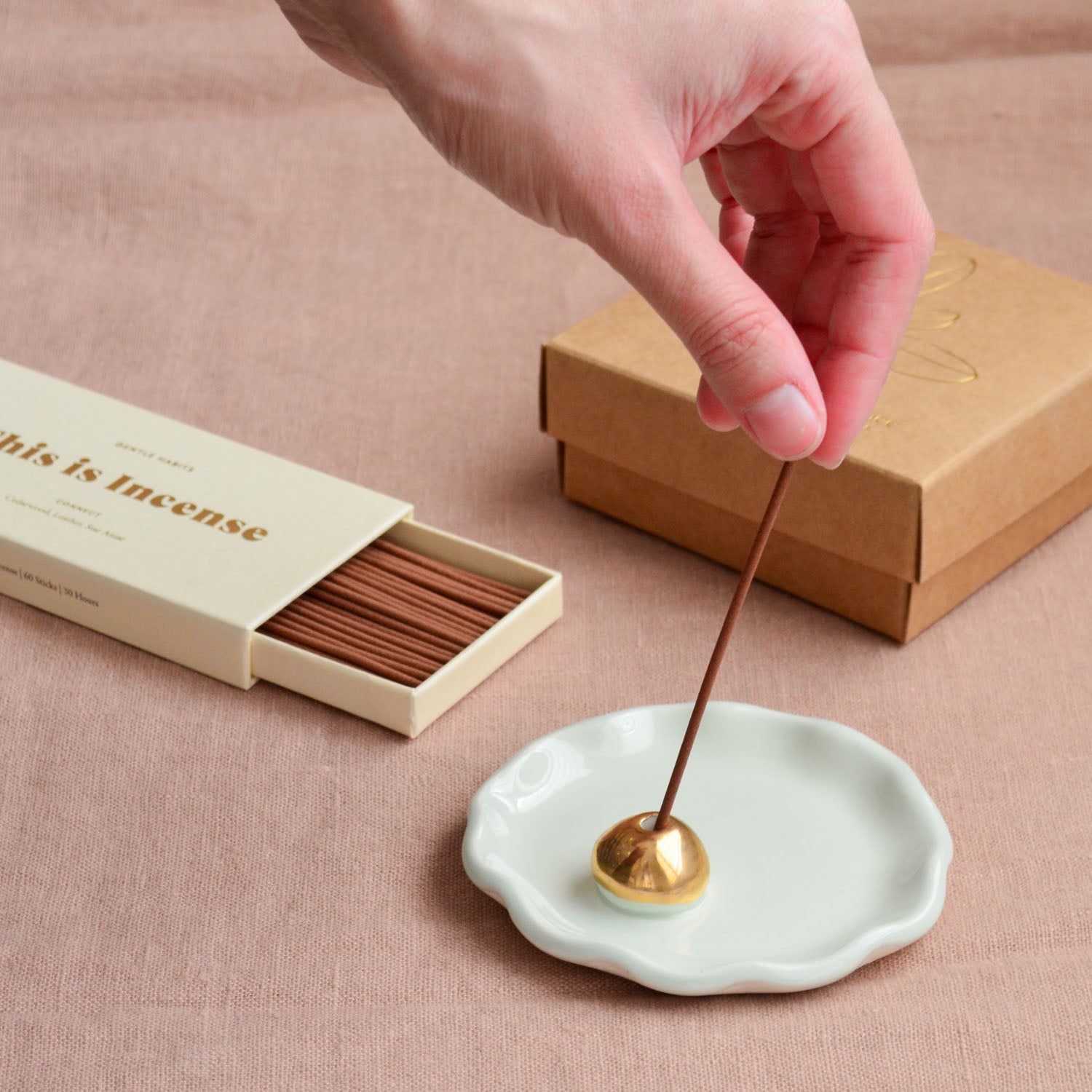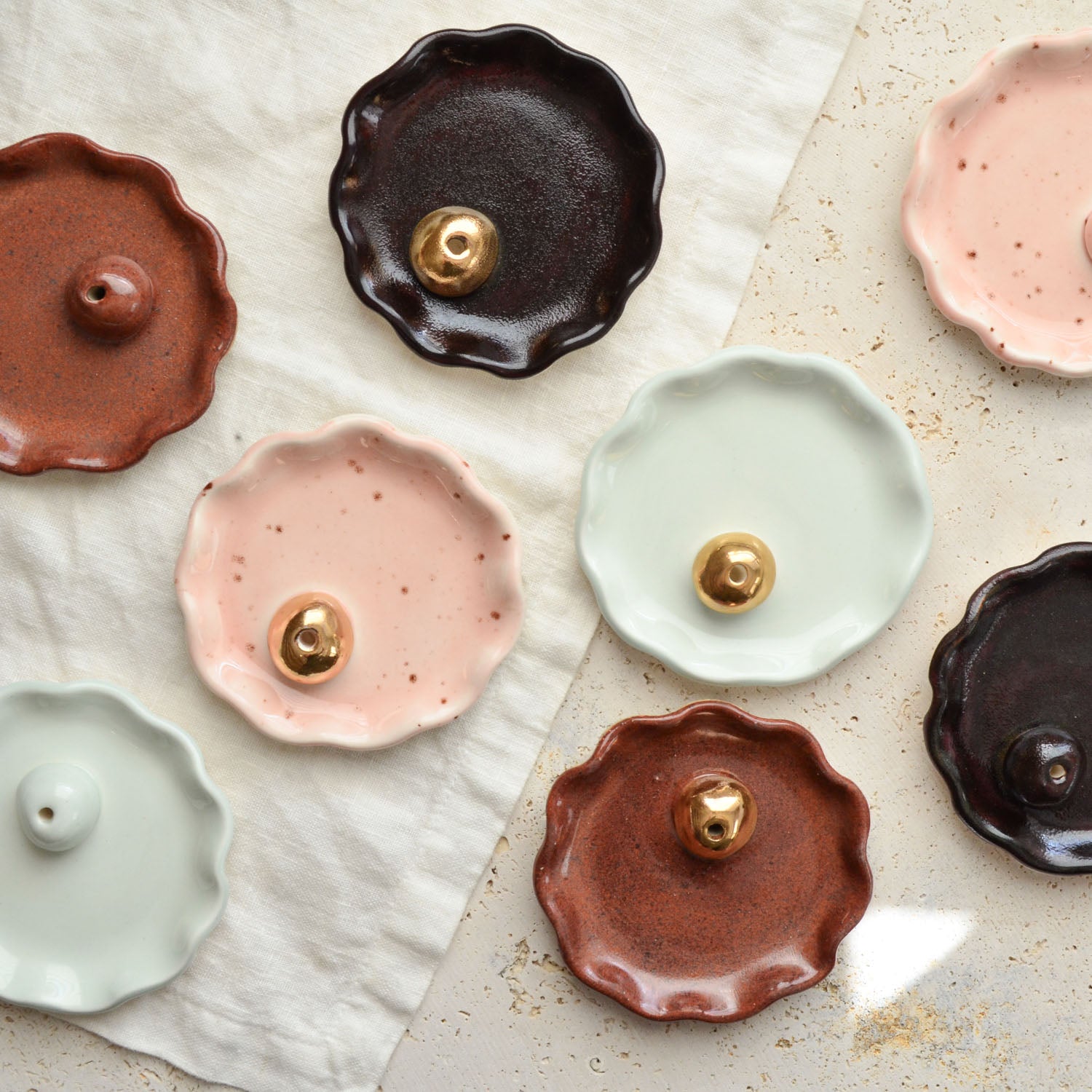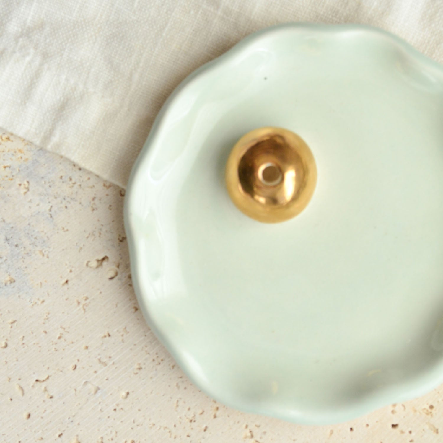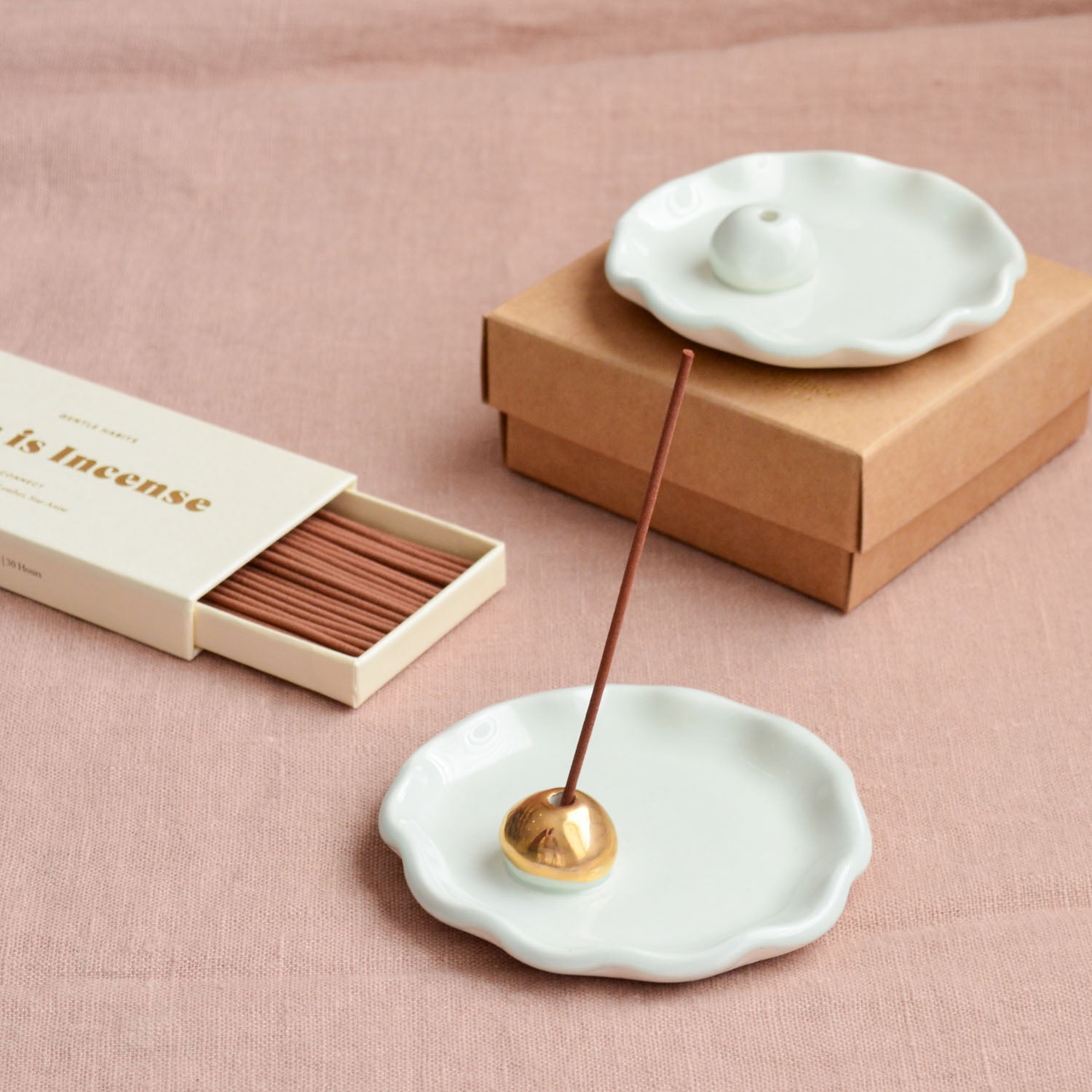 Handmade in our Noosa studio from premium Australian porcelain, this elegant ceramic incense holder features a playful ruffle edge for a fun, decorative look and is finished in our dreamy soft blue Mist glaze.