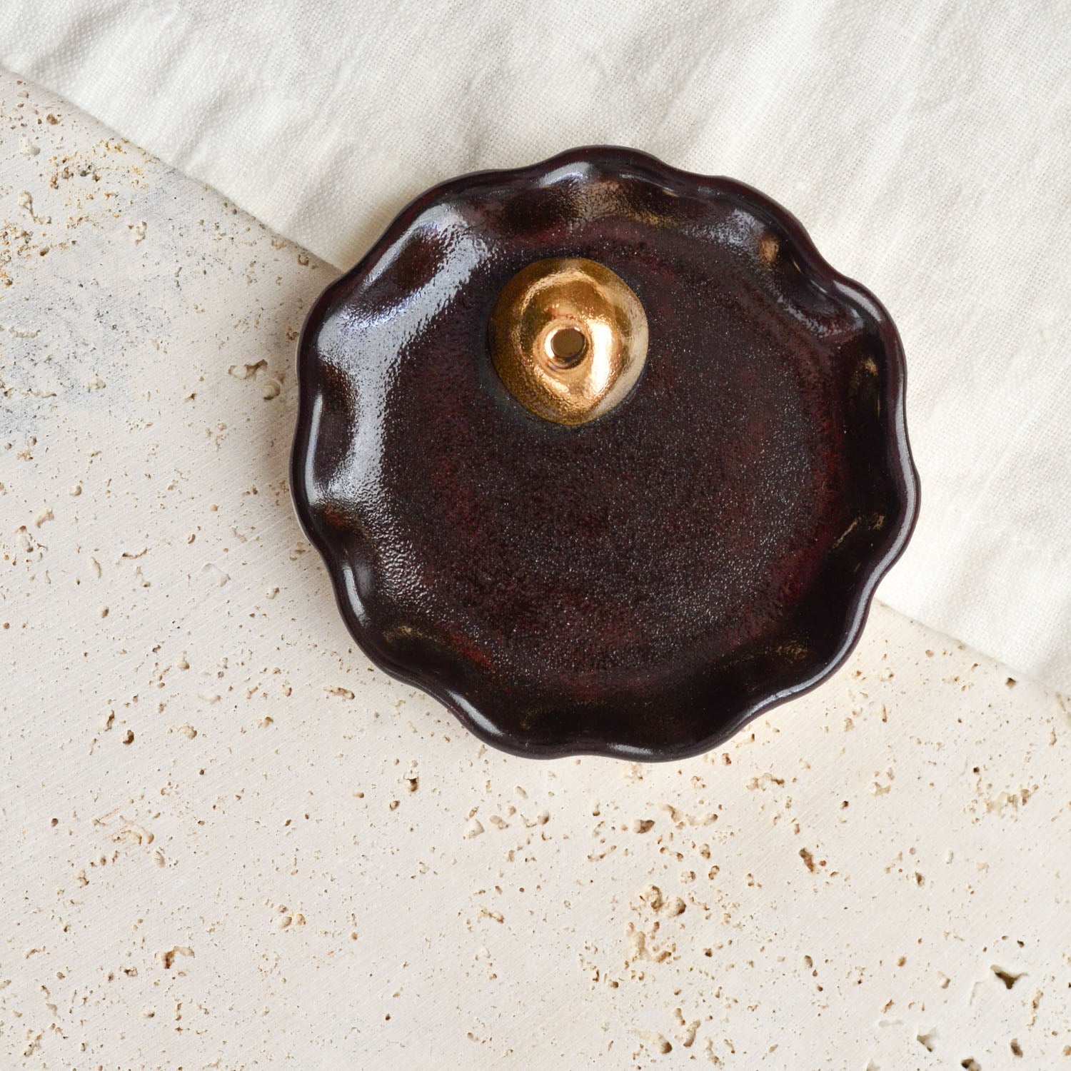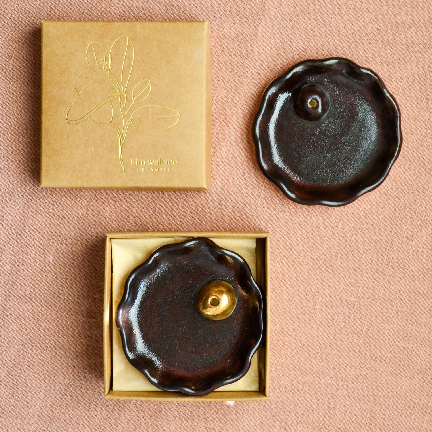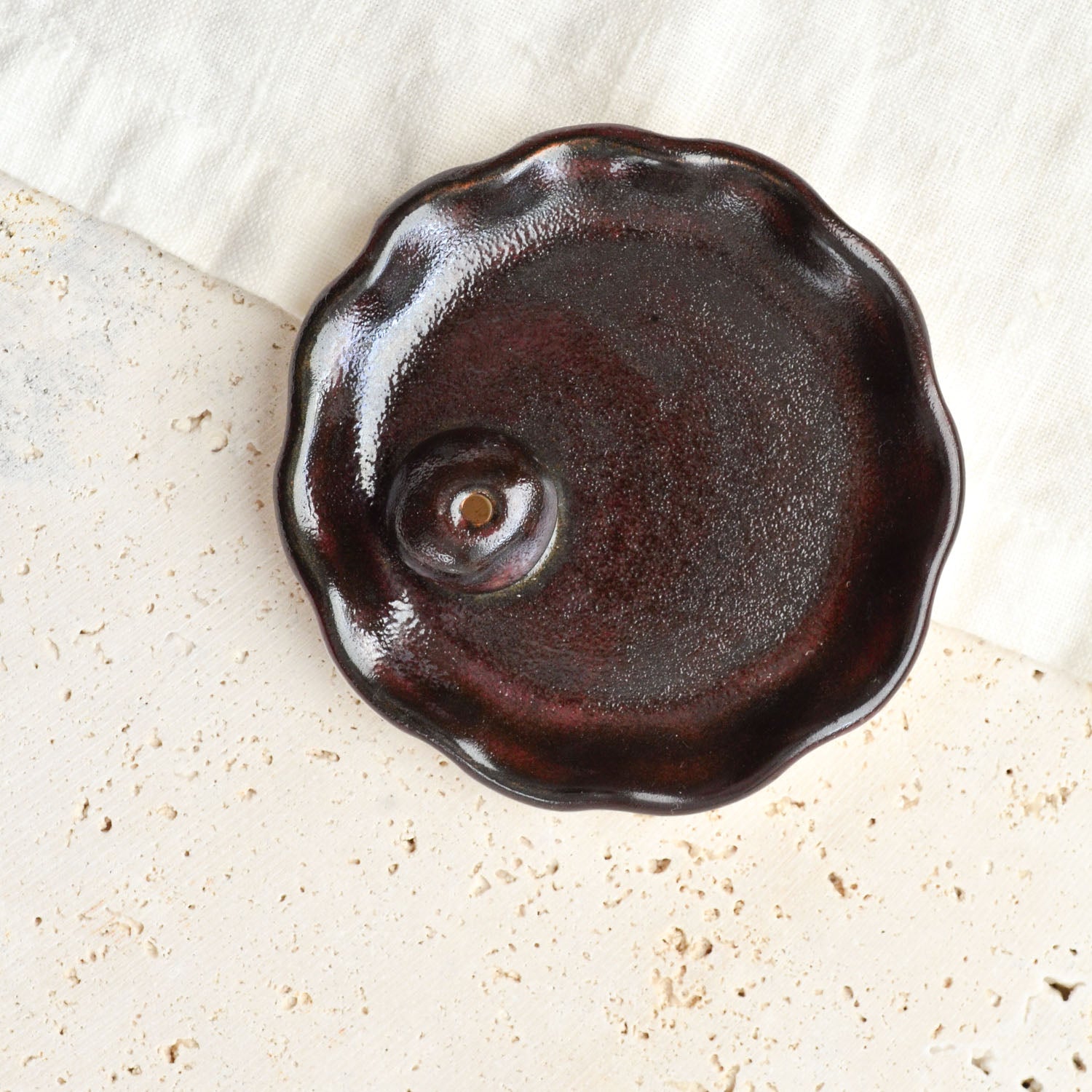Handmade in our Noosa studio from premium Australian porcelain, this elegant ceramic incense holder features a playful ruffle edge for a fun, decorative look and is finished in our velvety rich Plum glaze.