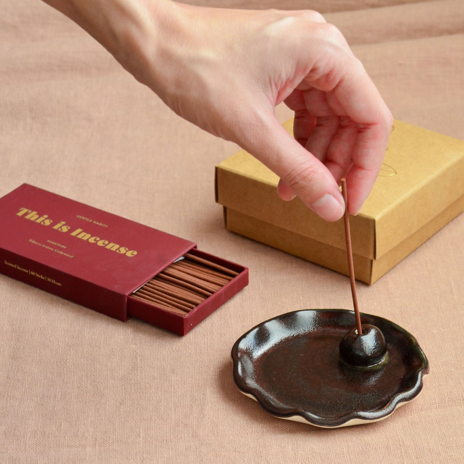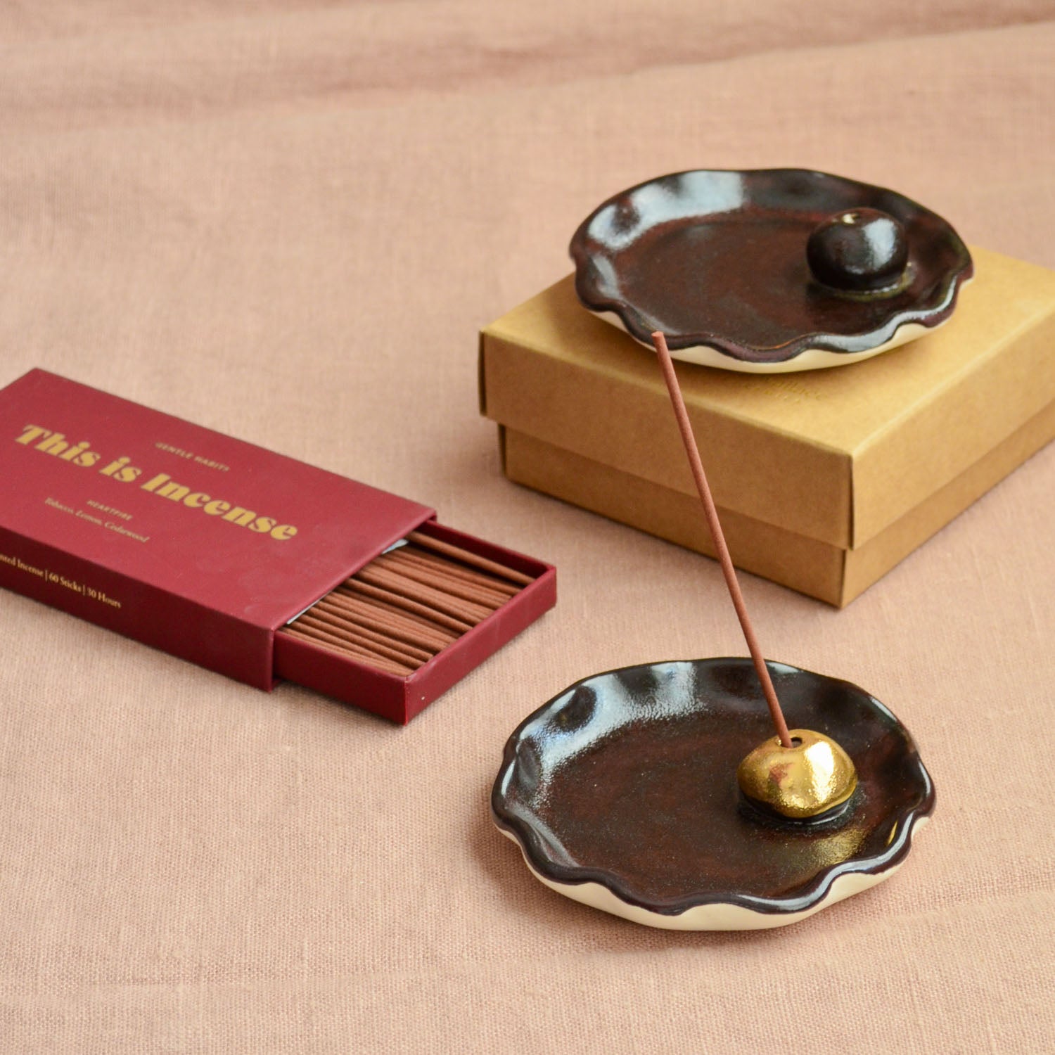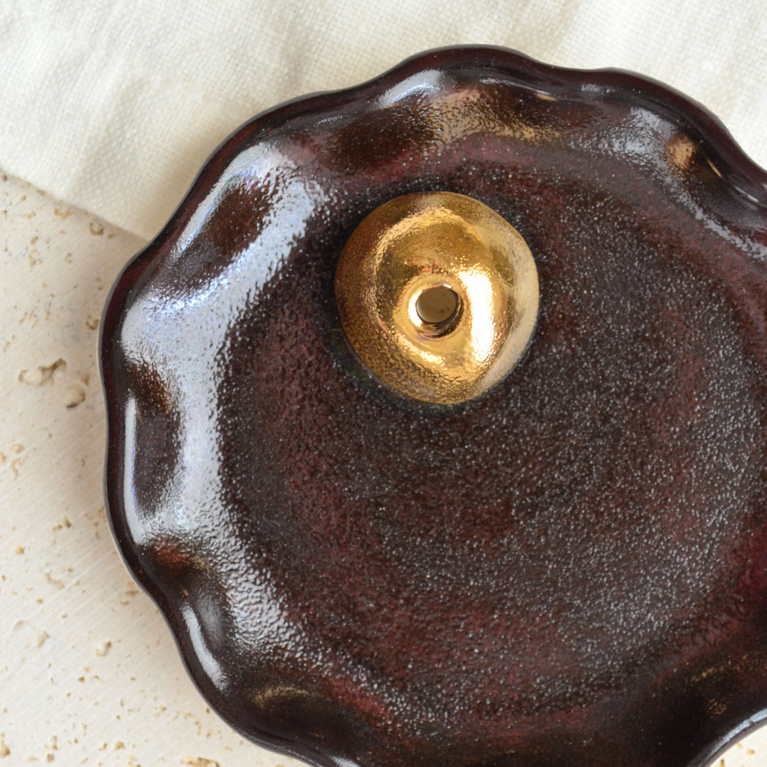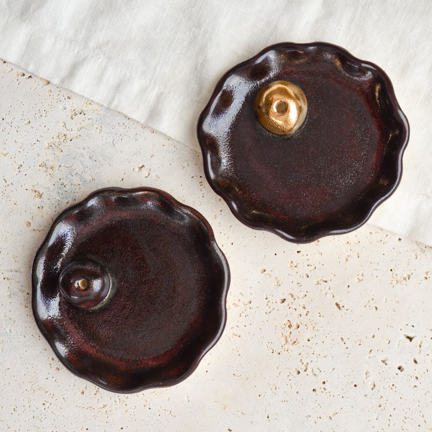 Handmade in our Noosa studio from premium Australian porcelain, this elegant ceramic incense holder features a playful ruffle edge for a fun, decorative look and is finished in our velvety rich Plum glaze.