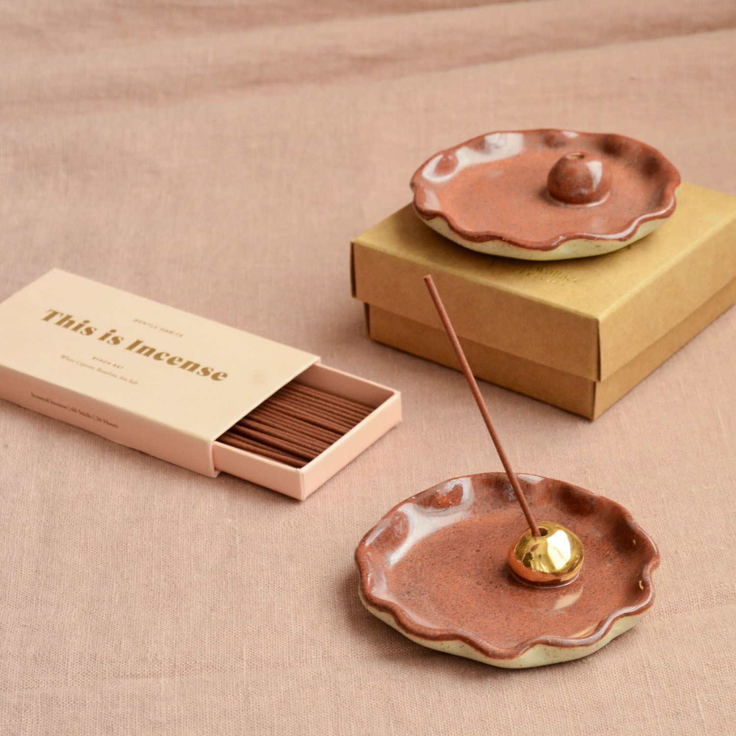 Ruffle Edge Incense Holder ~ Red Gum
