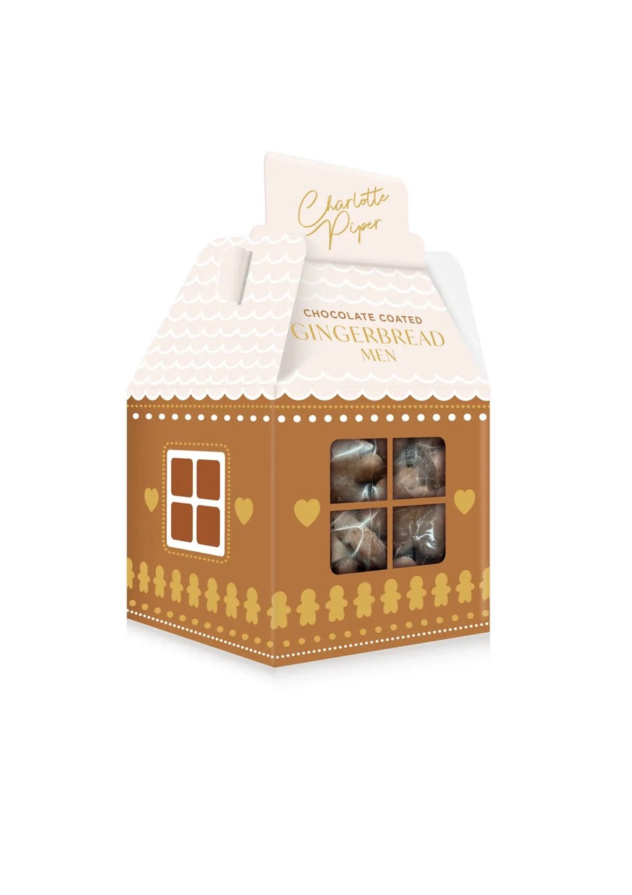 Delicious gingerbread men coated in Charlotte Piper's delightful creamy milk chocolate. Perfect for Christmas gifts and treats.