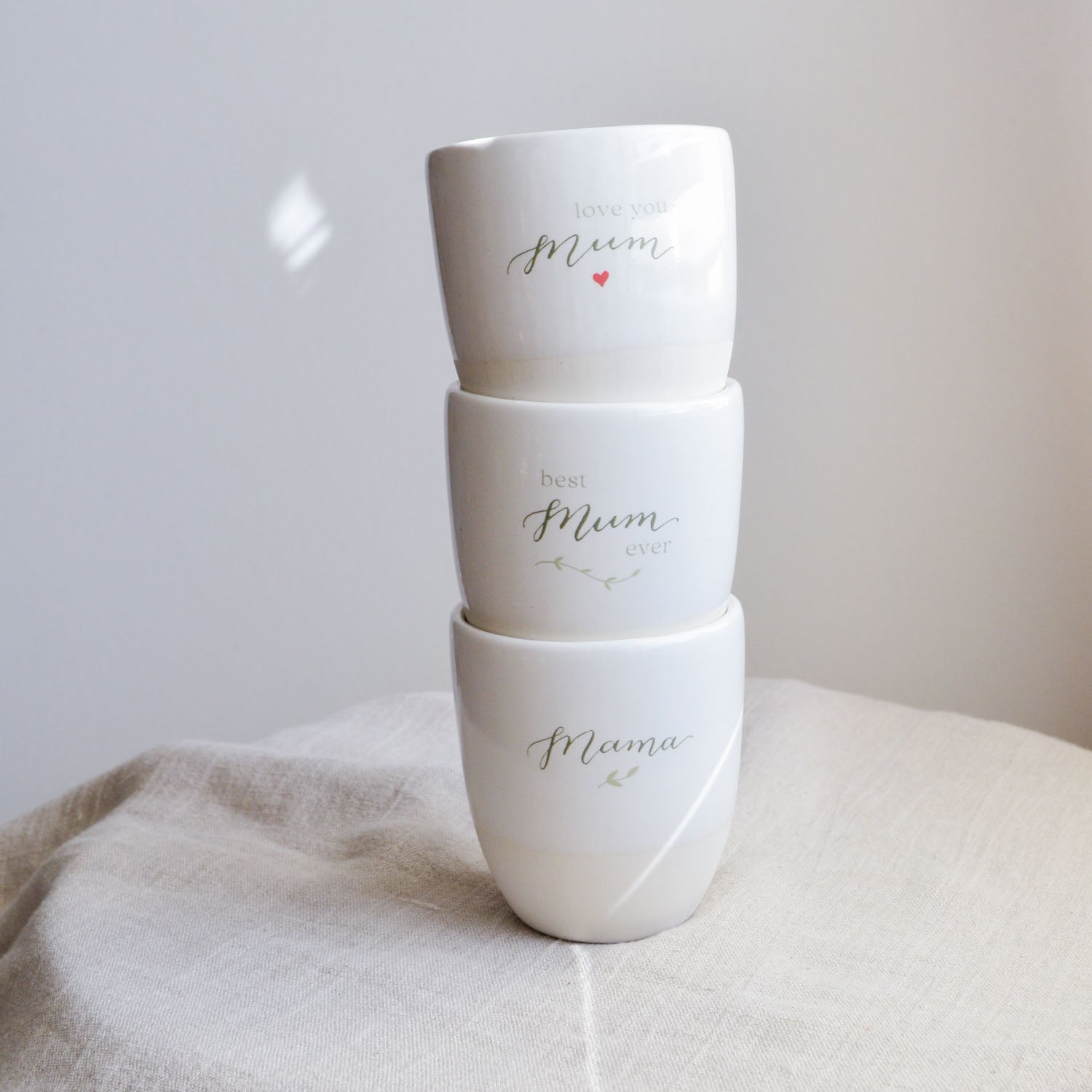 Crafted with care and adorned with a print of the original hand-drawn calligraphy created especially for us by Louise from Floralovely, this charming cup is the perfect Mother’s Day gift or birthday gift, or a sweet anytime token of love.