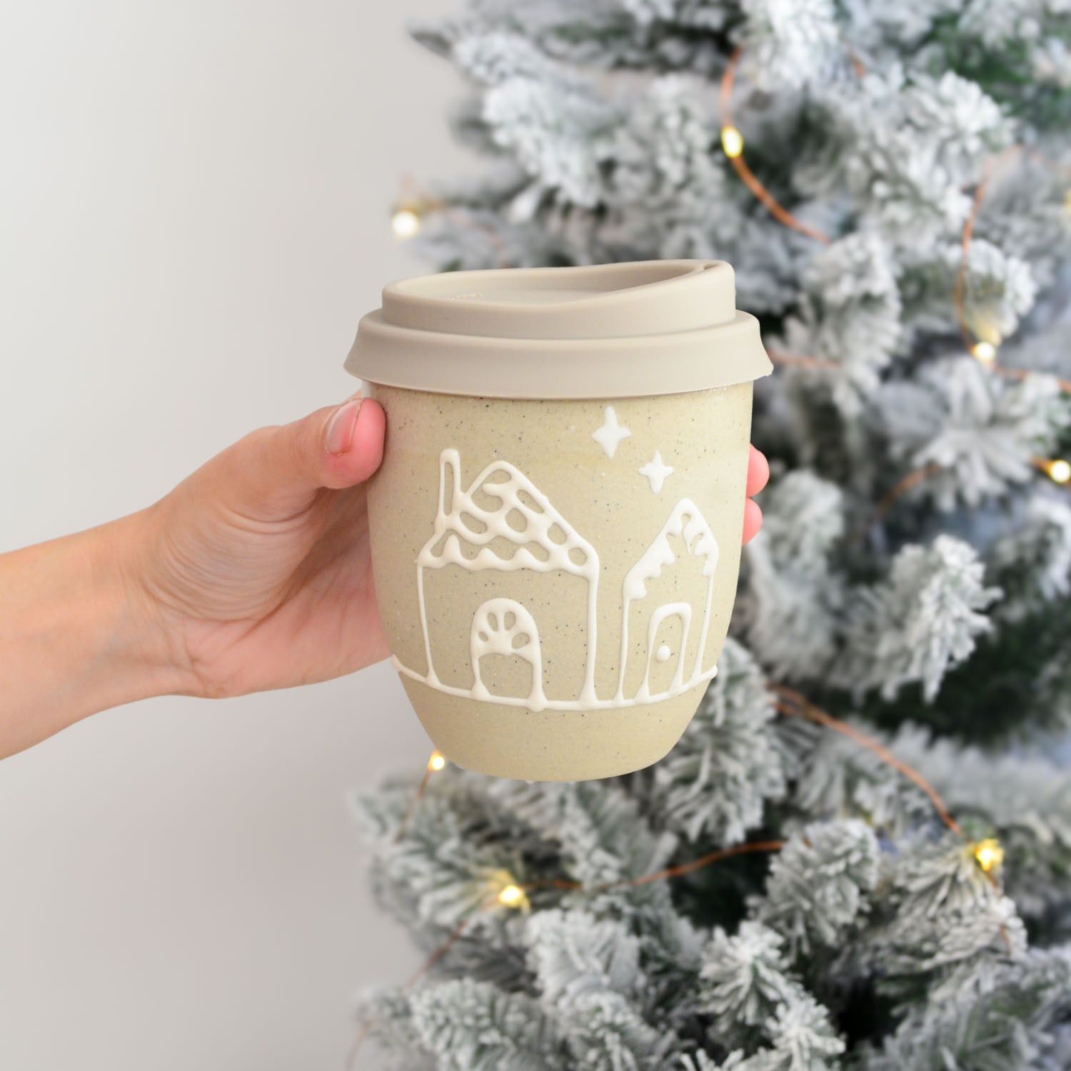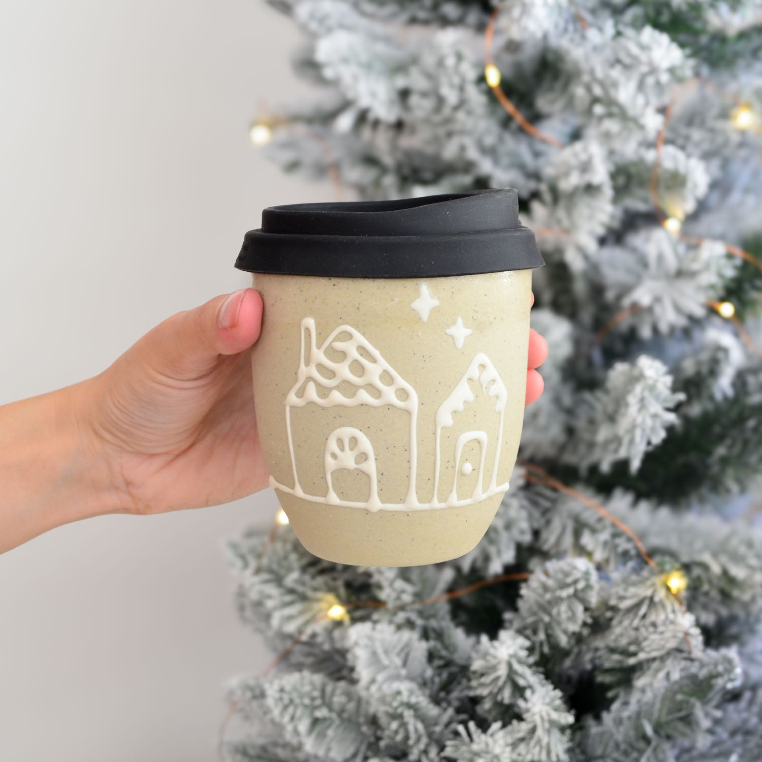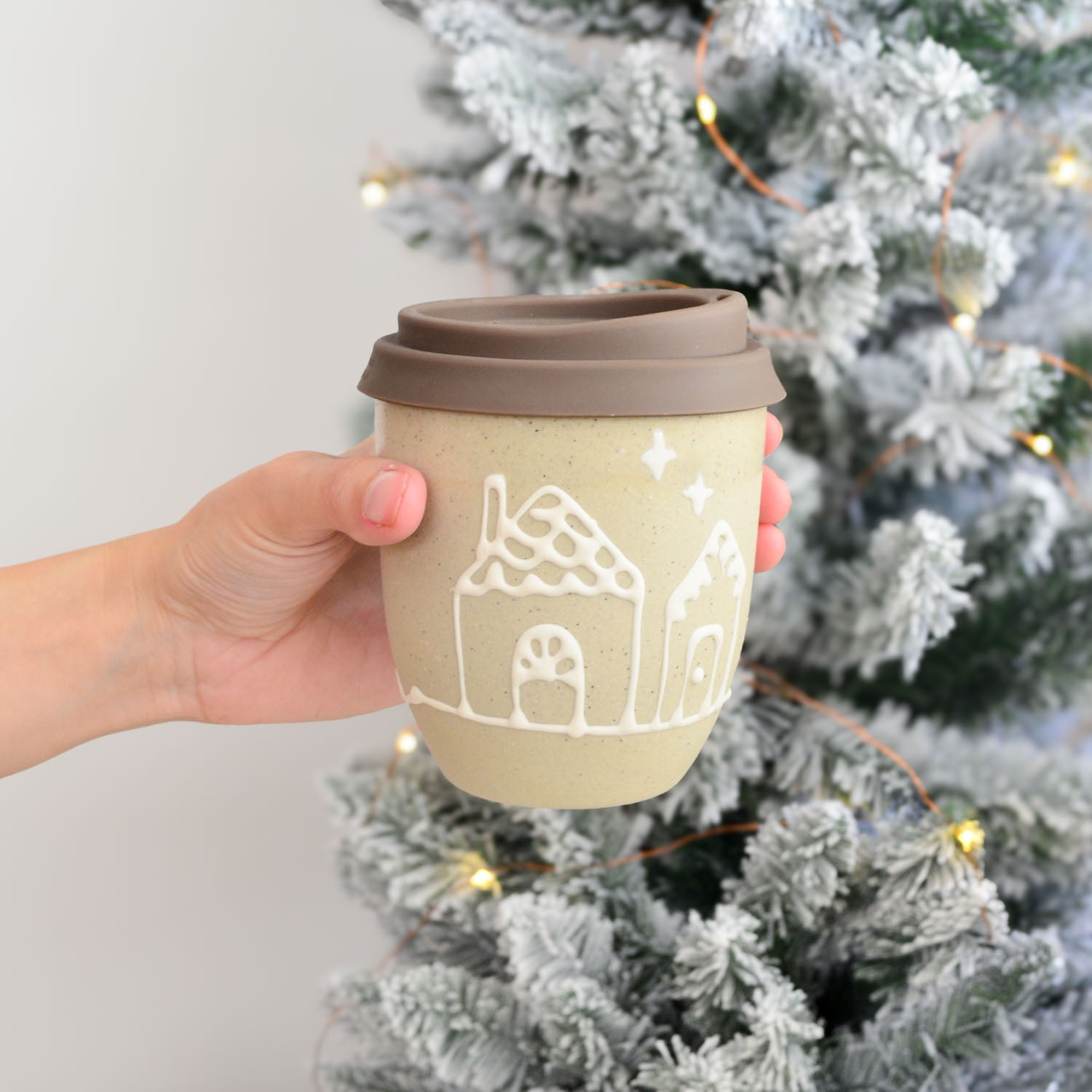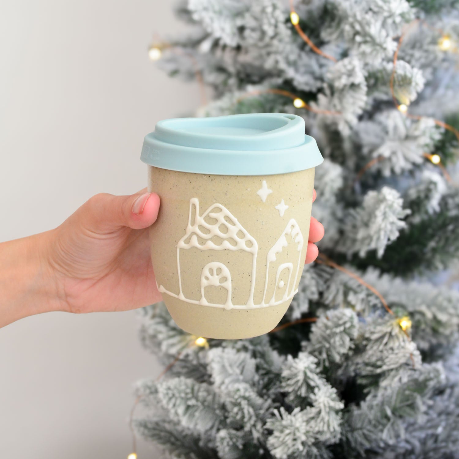Our Gingerbread Collection features a charming celebration of festive traditions handcrafted in our warm Australian studio. Each cup in this series showcases intricate, hand-drawn Christmas patterns — Holly, Gingerbread Houses, Snowflakes, and Garlands— created using a white slip trailing technique on our natural stoneware, mirroring the delicate icing designs of gingerbread cookies and houses.