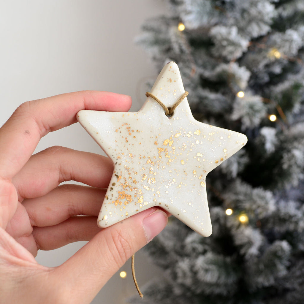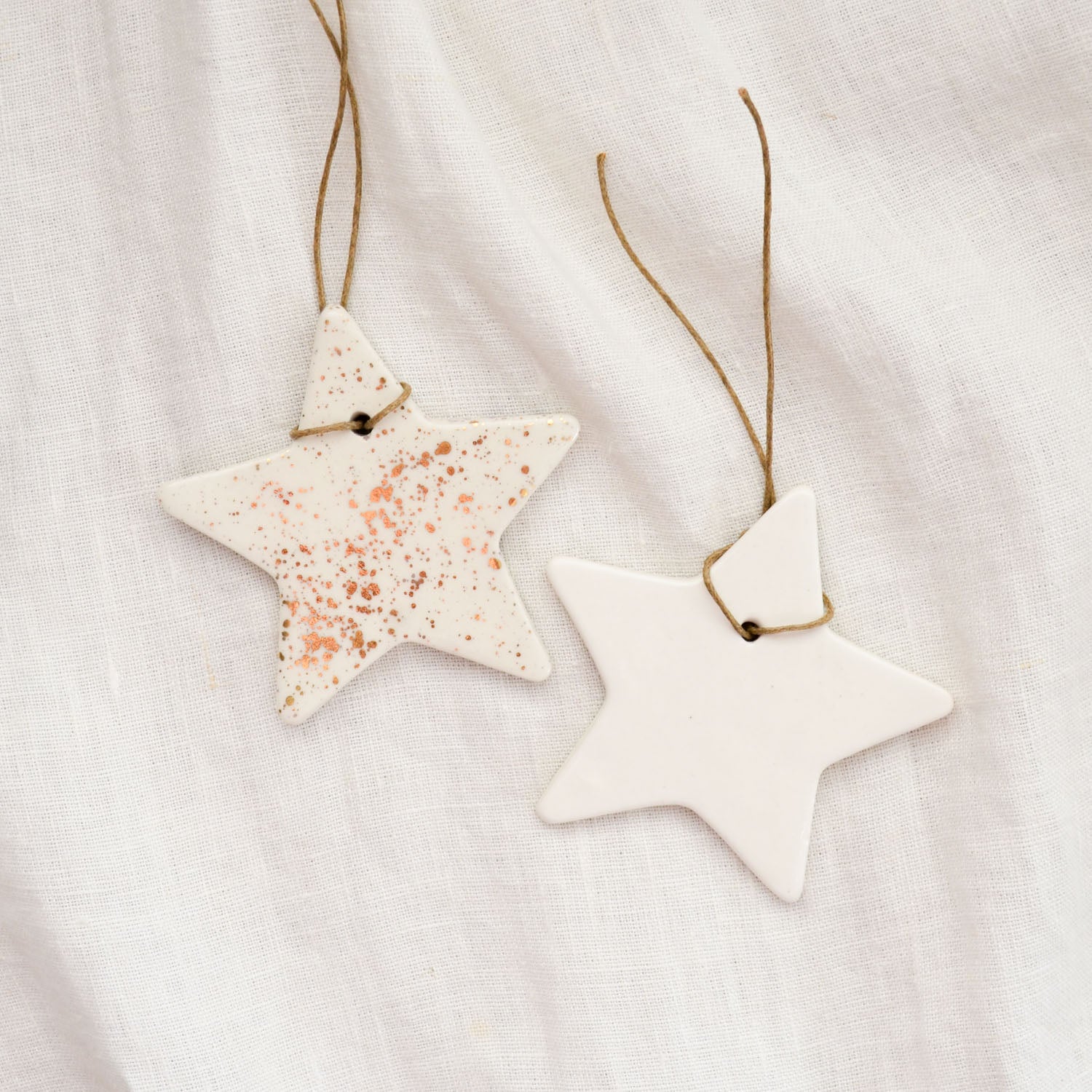 Choose from solid colour stars or add a touch of elegance with hand-splattered true gold lustre accents, or add our personalisation option for a truly special memento.