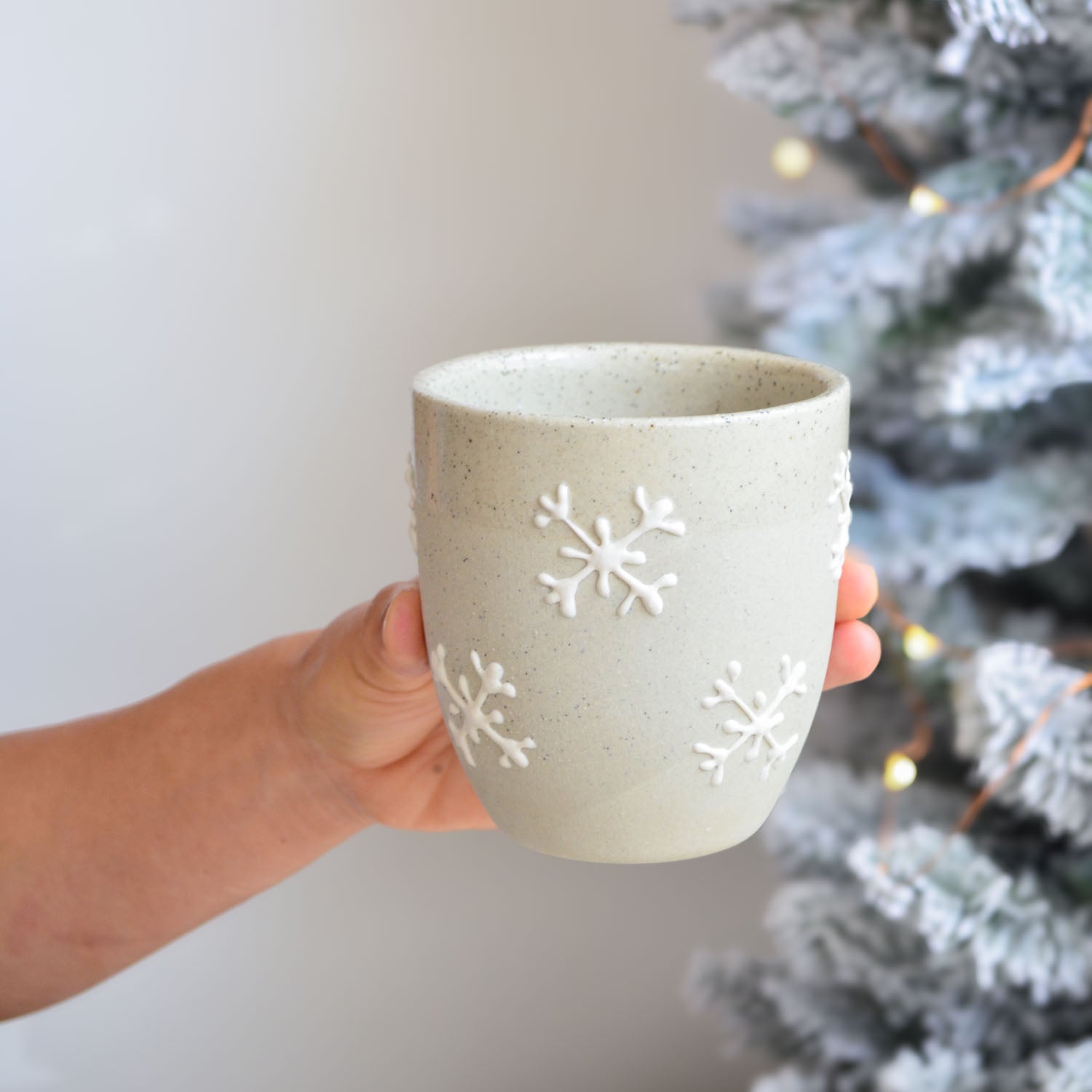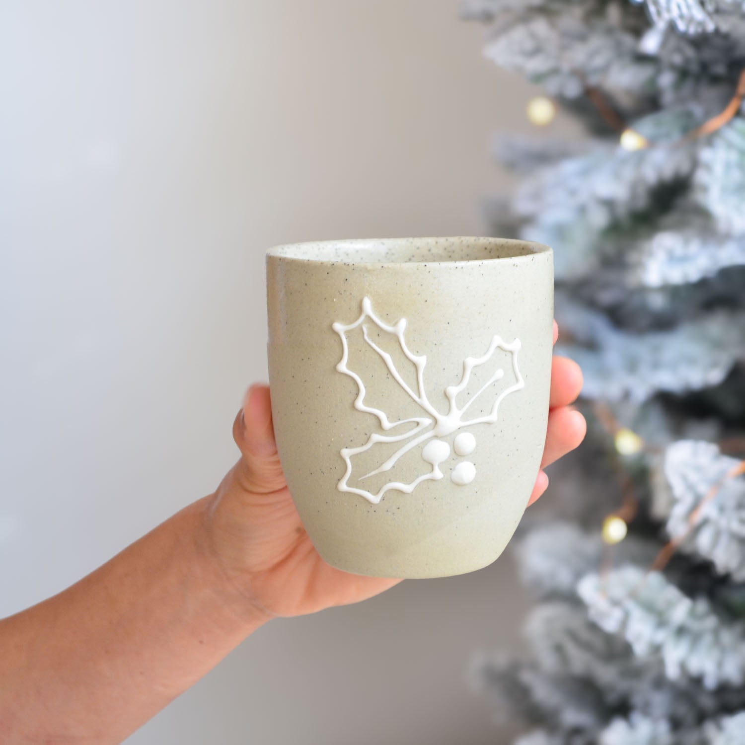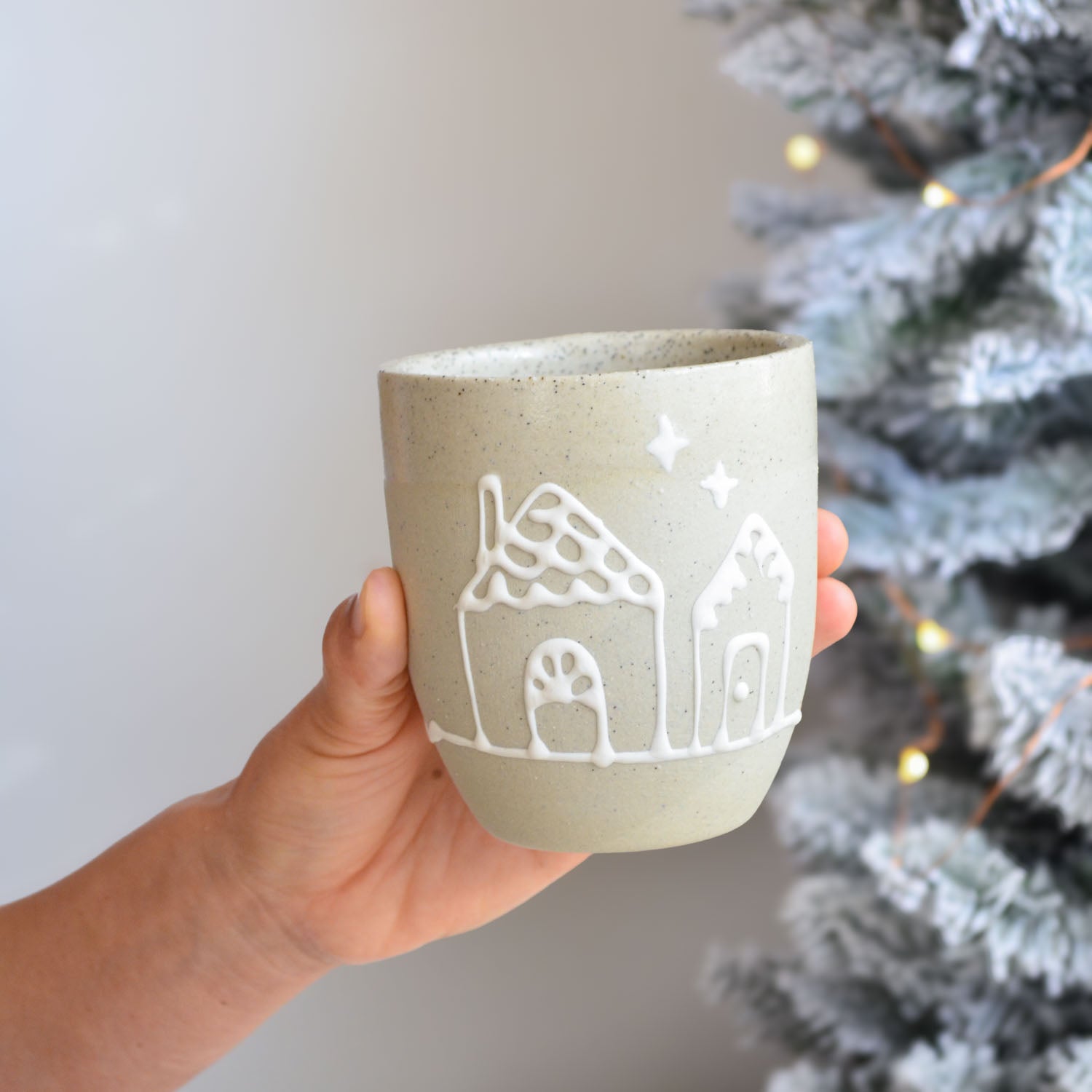 Our Gingerbread Collection features a charming celebration of festive traditions handcrafted in our warm Australian studio. Each cup in this series showcases intricate, hand-drawn Christmas patterns — Holly, Gingerbread Houses, Snowflakes, and Garlands— created using a white slip trailing technique on our natural stoneware, mirroring the delicate icing designs of gingerbread cookies and houses.