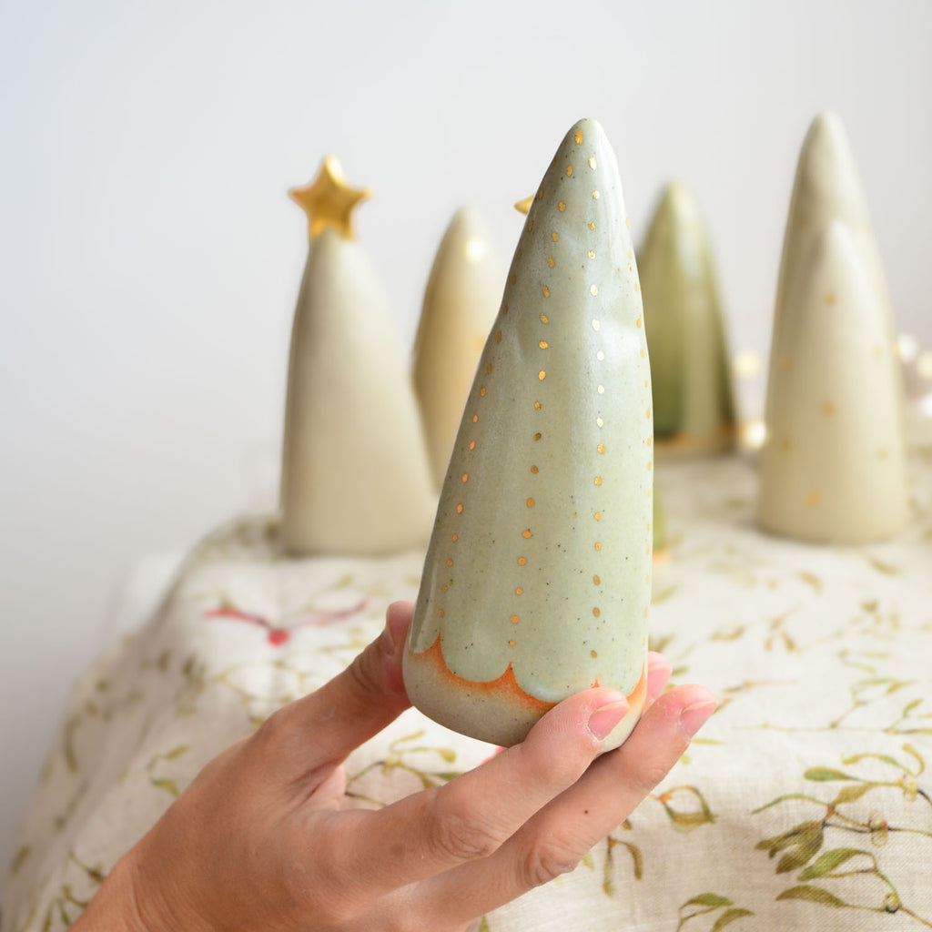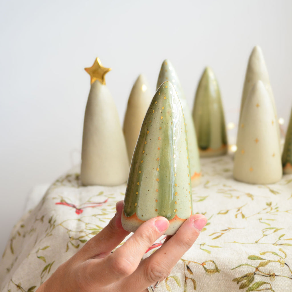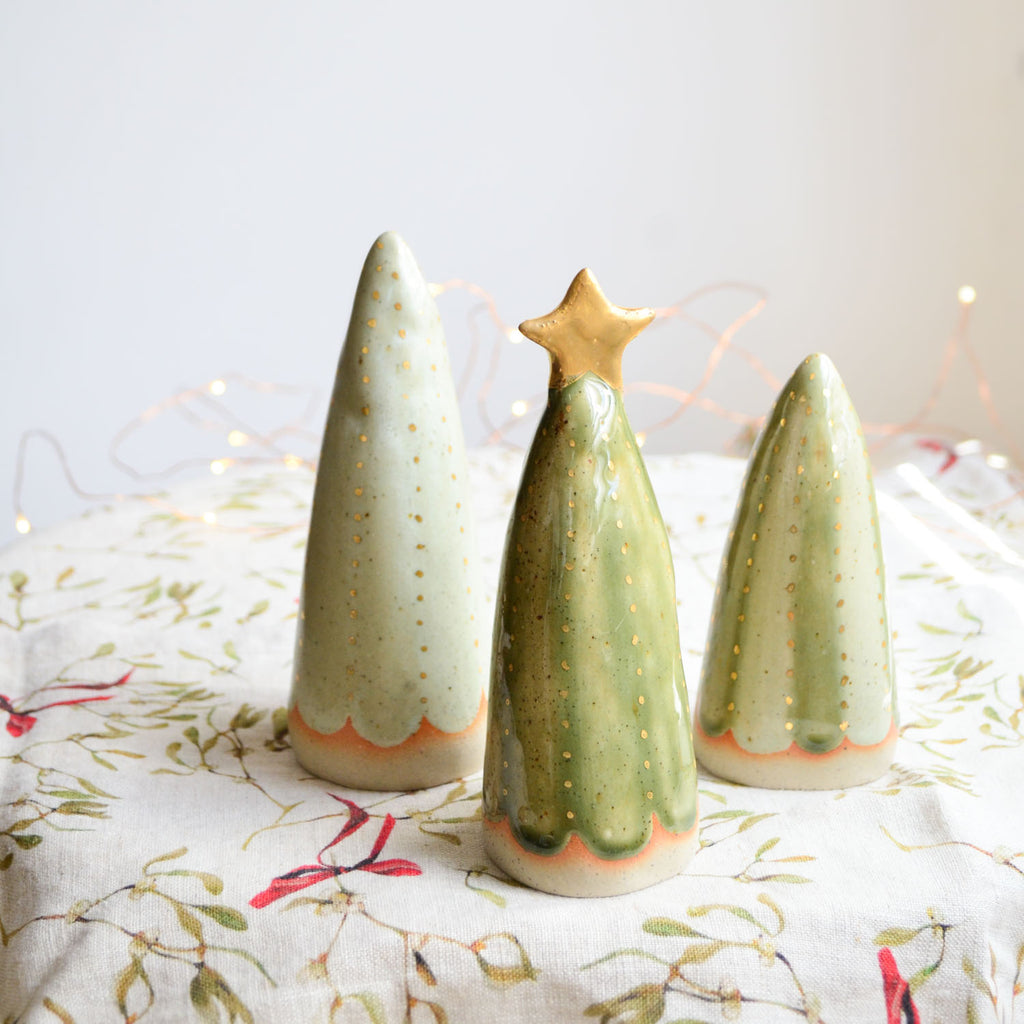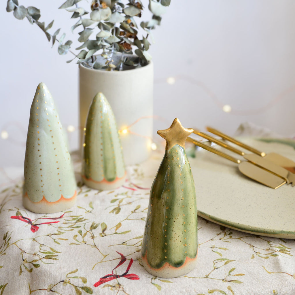 Add some sparkly festive cheer with our ceramic Christmas tree table decorations, handcrafted from premium Australian stoneware clay. Cast from a plaster mould of an original hand-sculpted design, and lovingly hand-glazed in a range of rich green tones.