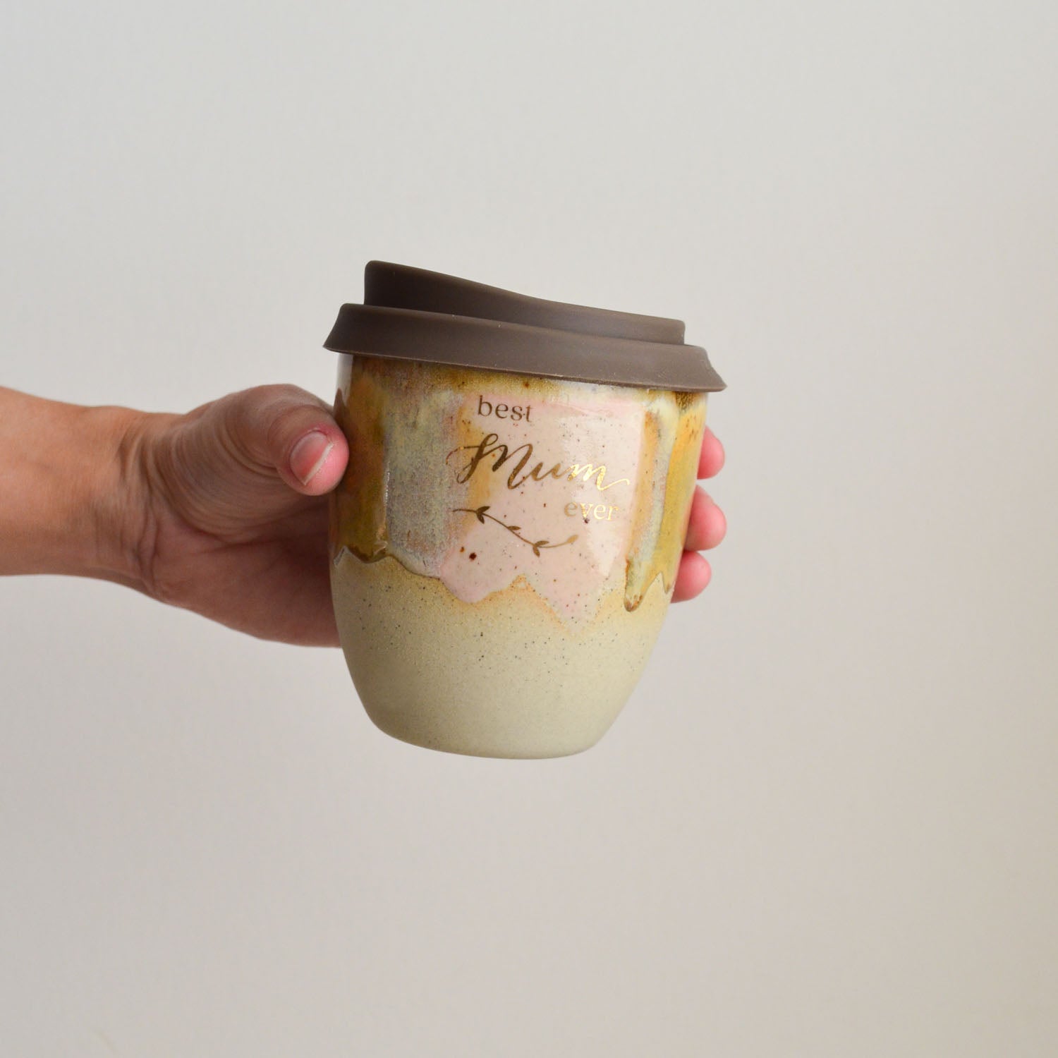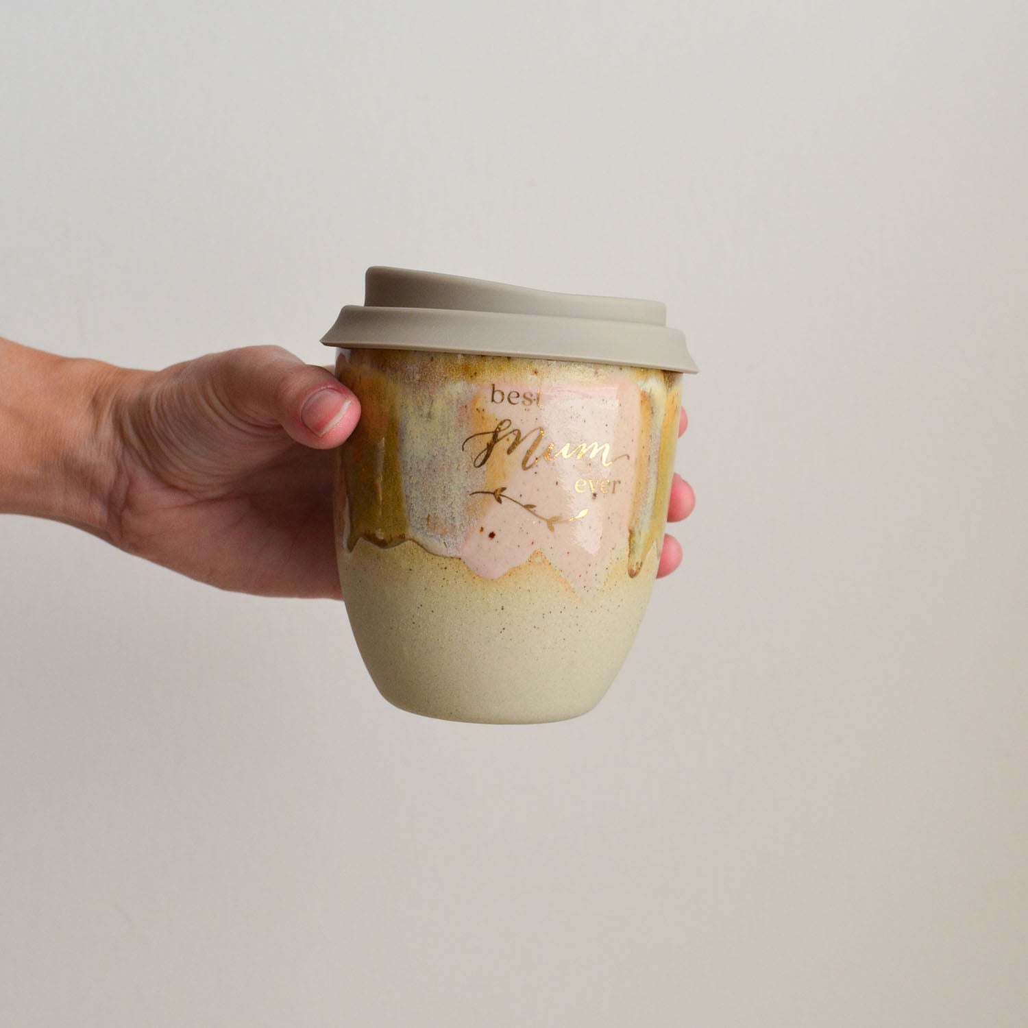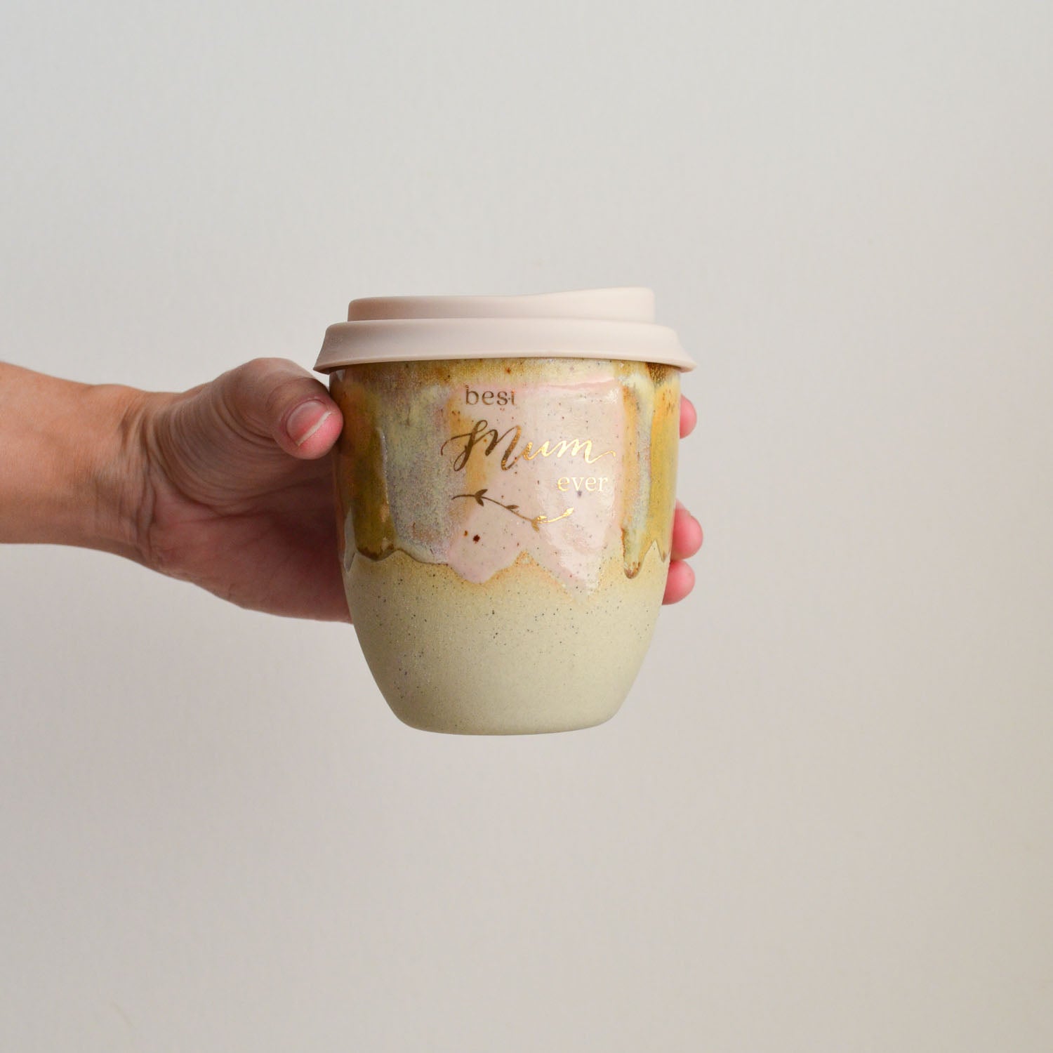 Honour the most amazing Mum with this handmade stoneware cup, featuring the charming 'Best Mum Ever' print in gorgeous gold lustre finish.